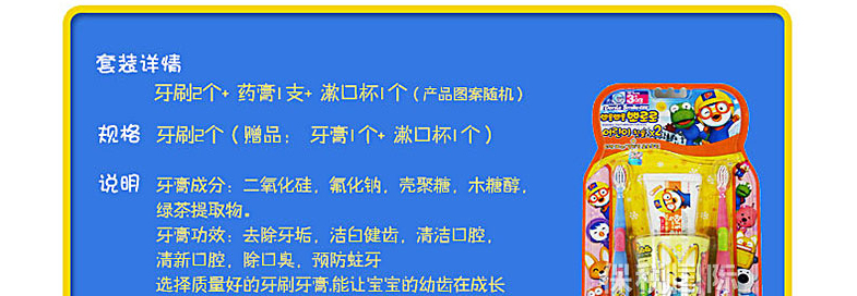 商品名稱 | 韓國寶露露 牙刷兩個裝 贈送(牙膏1個+ 漱口杯1個) | ||