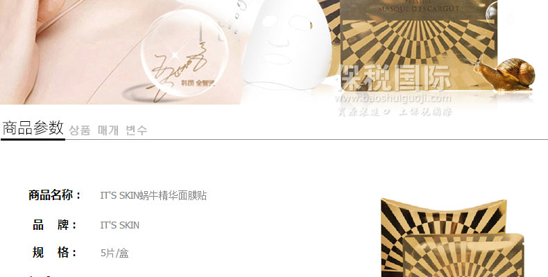 | 品 牌 | It's skin | 規(guī) 格 | 25g*5片∕盒 | |