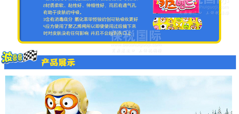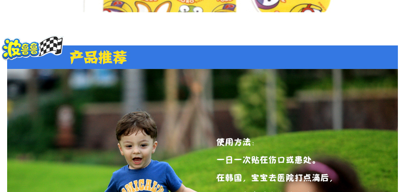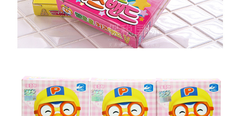 韓國PORORO寶露露 兒童卡通可愛ok繃/創可貼 20片/盒*3盒—— 1.易貼彈性好,吸收力強,保護皮膚。 2. 使用低刺激性膠所以敏感皮膚亦可使用。 3. 材質柔軟、粘性好、伸縮性好,而且有透氣孔有助于皮膚的呼吸。 4. 含有消毒成分,吸收更好。 【友情提示】36個月以下的寶寶使用時請留意是否有過敏,注意觀察。貼之前,請先用消毒濕巾清潔破傷處,貼著時間不要過久。 |