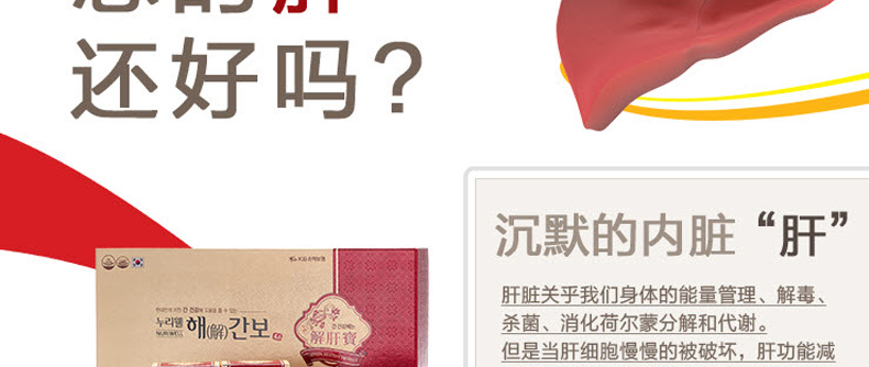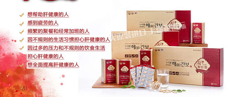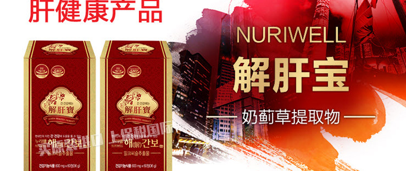 韓國(guó)NURIWELL解肝寶片 強(qiáng)化肝臟功能 守護(hù)你的肝臟 60片/盒*4—— 1、富含奶薊草,枳椇子等提取物成分。 2、有效保護(hù)肝臟,強(qiáng)化肝功能。 3、每日1次,每次2片。 |