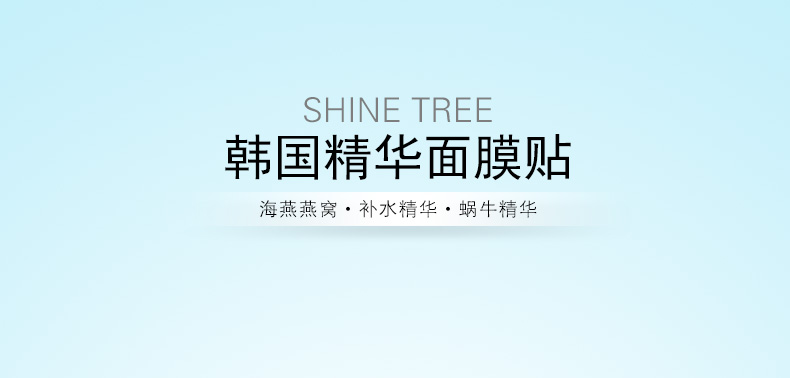 2盒裝韓國SHINE TREE海燕燕窩精華面膜 保濕營養活力 25ml*10片/盒*2—— 1、蘊含海燕窩精華提取物。 2、提升皮膚附著力的竹纖維面料。 3、潤澤肌膚,使肌膚柔滑細膩。 |