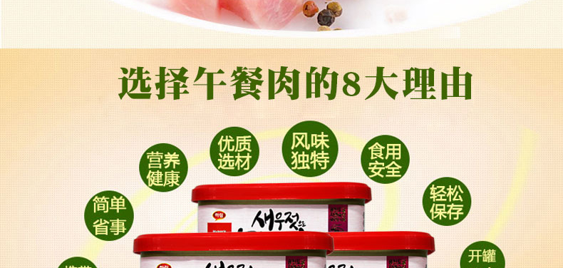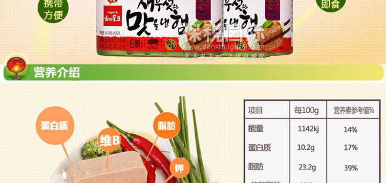 harim hypork蝦醬午餐肉+清凈園 菜籽油 綜合套裝 1號—— 1、只使用脂肪低的部位的肉(脂肪低的部位的肉中也只選脂肪含量不到2.8的部位)。 2、結塊現象:冬季或在冰箱內保管時會出現凍結現象,在常溫(25度)放置兩小時以上就會恢復常態。此狀態與品質無關。 此次產品為試用促銷裝,僅限3個,售完為止。 |