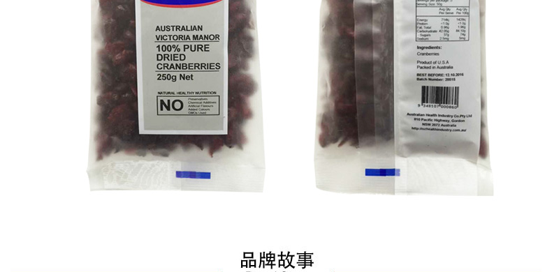 澳洲 VICTORIA MANO 蔓越莓干 維多利亞莊園 美容養顏干果零食250g/袋 |