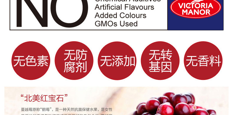 澳洲 VICTORIA MANO 蔓越莓干 維多利亞莊園 美容養顏干果零食250g/袋—— 1、零脂肪、無添加、純天然、酸甜味美的休閑食品。 2、預防和控制婦女泌尿道感染以及抑制幽門螺旋桿菌感染。 |