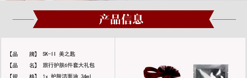 美之匙SK-II旅行護膚6件套大禮包 潔面油+乳液+清瑩露+修護霜+卸妝霜+修護面膜—— 1、卸妝,潔面,水乳霜面膜俱備。 2、旅行裝,攜帶方便。 3、給肌膚全程的精心呵護。 |