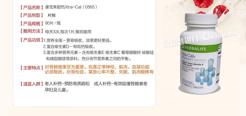 美國康寶萊herbalife 超鈣片維迪片 加強鈣鎂片維生素D 強健骨骼 預防骨質疏松 補鈣保健品90粒/瓶—— 1、對骨質疏松癥,某些心律不整,失眠,肌肉酸痛有幫助。 2、超鈣加強型,營養更全面,更易吸收,效果更好。 |