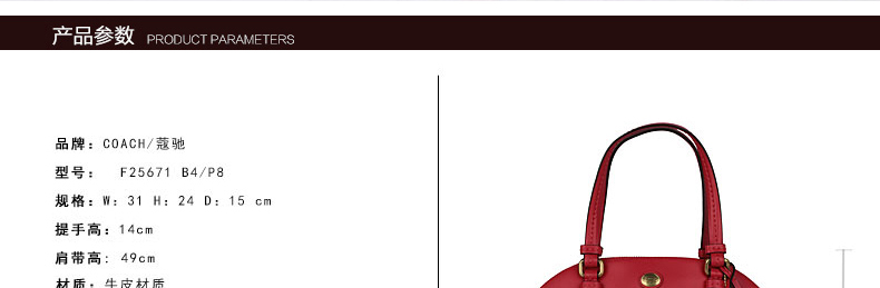![]() | 商品名稱 | 美國現貨 蔻馳COACH 女士紅色真皮手提單肩貝殼包 F25671 B4/P8 | ||