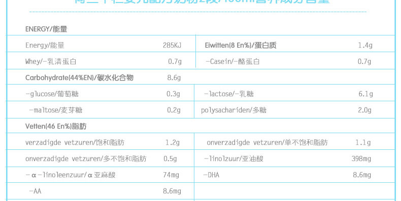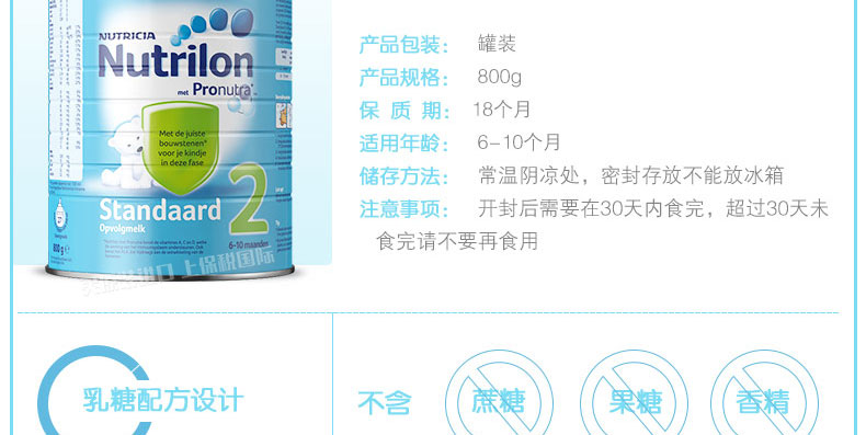 直郵3罐裝 荷蘭本土牛欄Nutrilon鐵罐裝2段奶粉 6-10個月嬰兒奶粉 800g/罐*3—— 1、牛欄鐵罐包裝與紙罐包裝配方完全一樣,無需轉(zhuǎn)奶! 2、奶粉開罐后4周內(nèi)必須吃完,超過4周奶粉容易和空氣中的水分結(jié)合而受潮結(jié)塊。 |