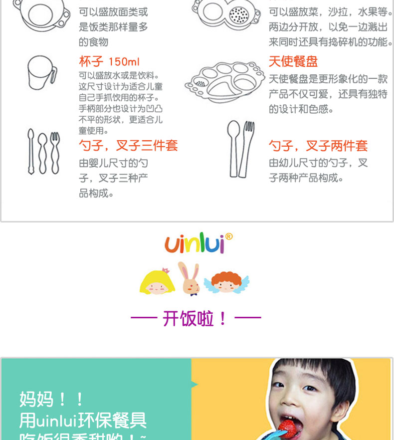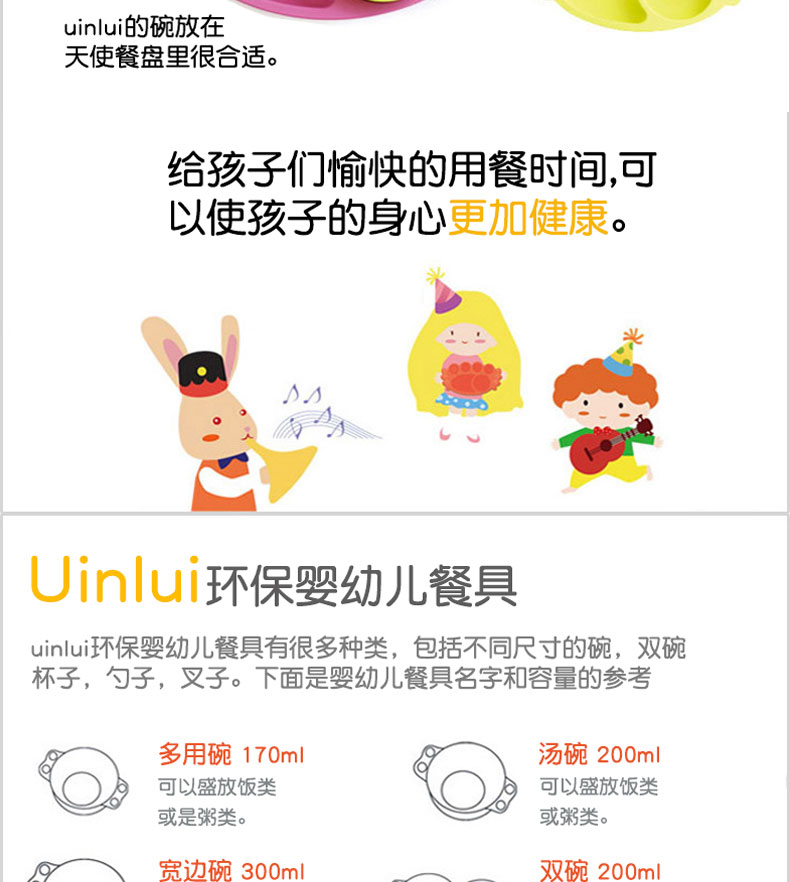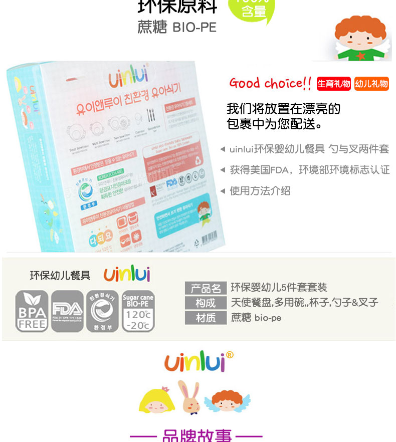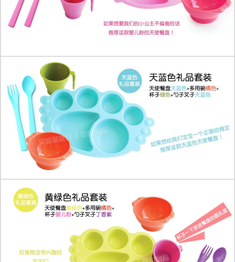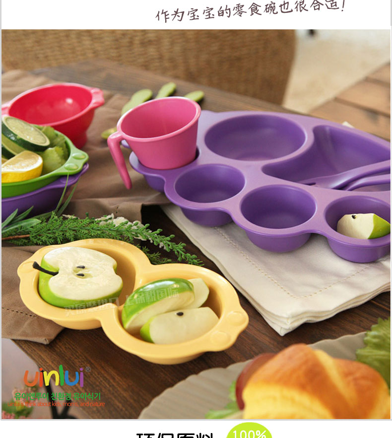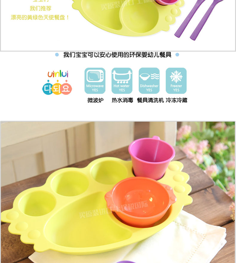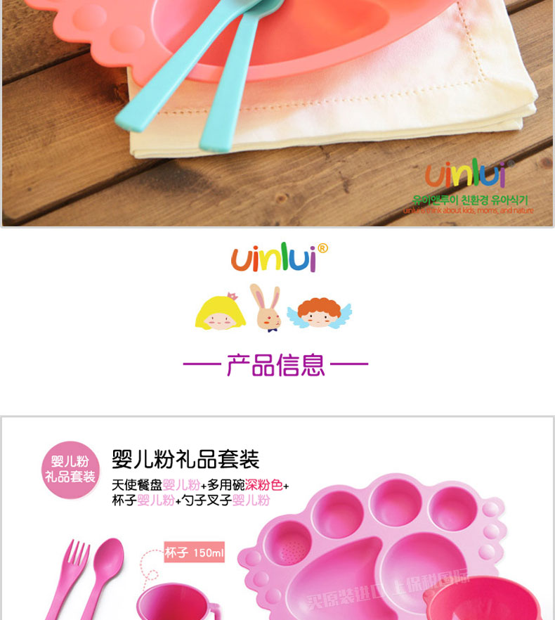 韓國優(yōu)妮如意Uinlui粉色天使餐盤5件套 多彩蔗糖環(huán)保嬰兒健康餐具碗勺水杯 禮品套裝 |