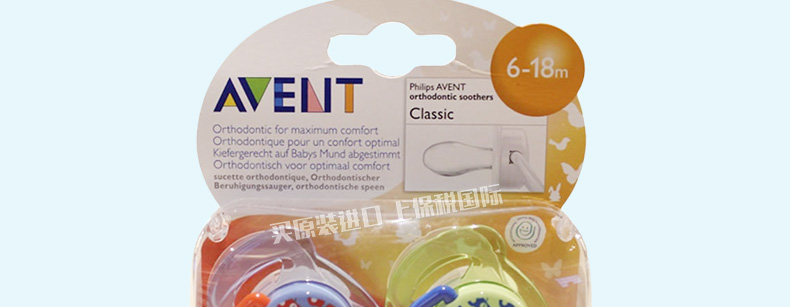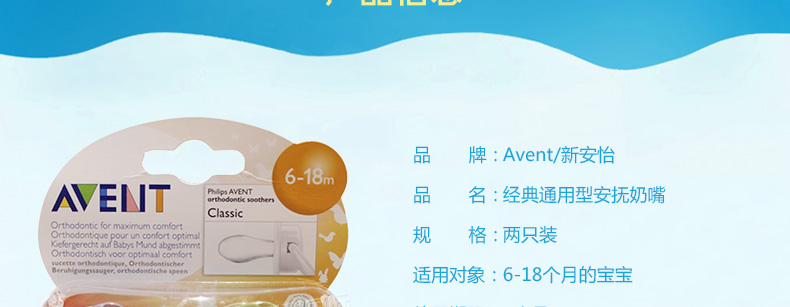 英國新安怡Avent經(jīng)典通用型安撫奶嘴 6-18個月的寶寶 兩只裝 |