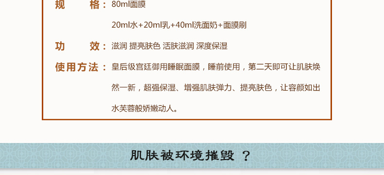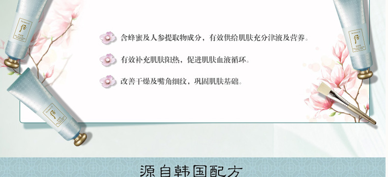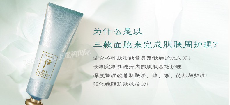 韓國WHOO后撫肌睡眠面膜套盒 蜂蜜人參面膜 營養保濕 80ml+3件中樣+面膜刷—— 1、80ml面膜+20ml水+20ml乳+40ml洗面奶+面膜刷。 2、含有山參和蜂蜜成分。 3、營養保濕,補熱保養。 |