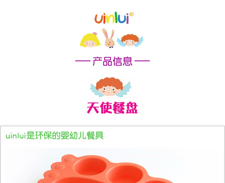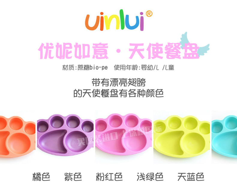 優(yōu)妮如意Uinlui 橘色嬰幼兒天使6格餐盤 非塑料百分百甘蔗制品健康環(huán)保餐具—— 1、植物提取優(yōu)質材料,通過歐盟質量檢查。 2、禮盒包裝,大氣上檔次,送人自用都放心。 |