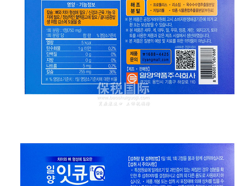 ![韓國[一洋藥品] 健齒&骨骼 It Q 鈣片 240片 750mg x 240片(180g)/盒](http://img.baoshuiguoji.com/image/a4367f0a553796867838ea090a8c5978.jpg)
