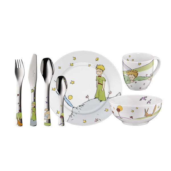德國(guó)福騰寶WMF帥氣小王子兒童餐具7件套 不銹鋼刀叉勺調(diào)羹+陶瓷杯碗盤 |