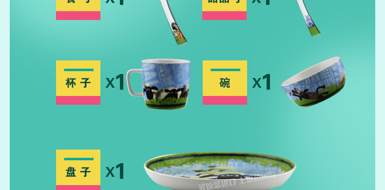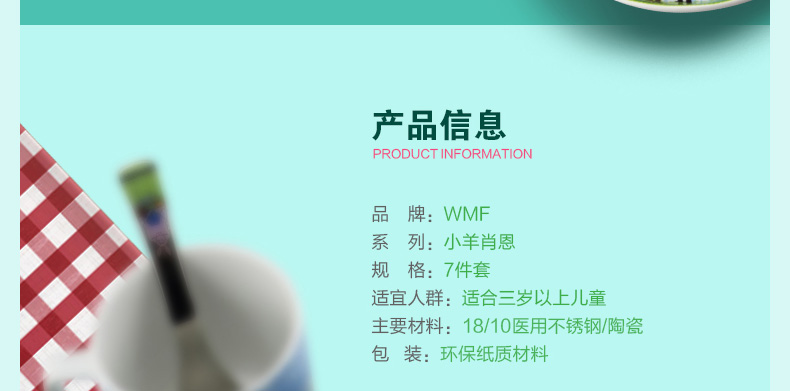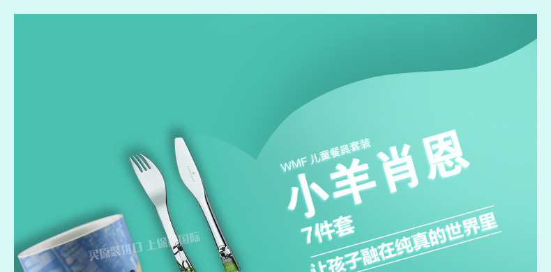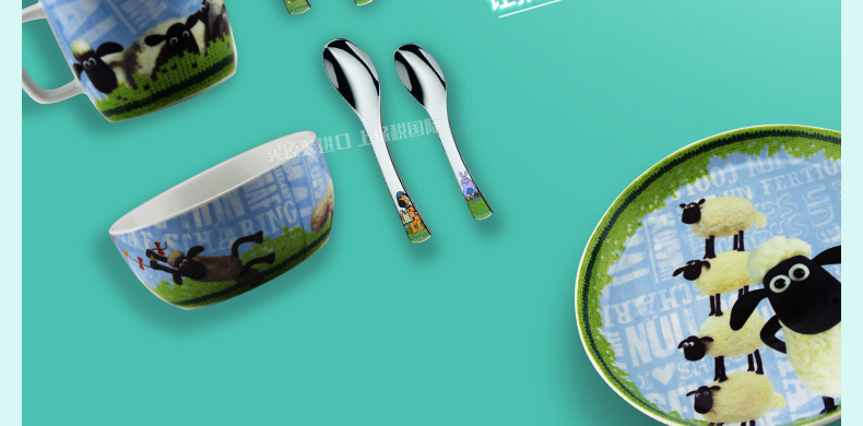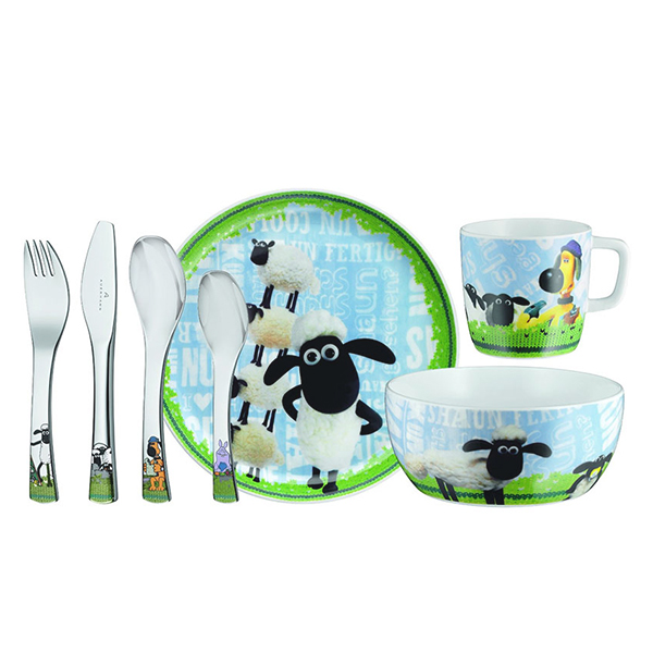 德國福騰寶WMF小羊肖恩兒童餐具7件套 不銹鋼刀叉勺調羹+陶瓷杯碗盤 |