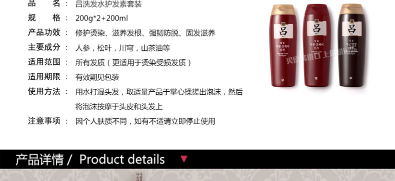 愛茉莉Amore紅呂棕呂活力企劃套裝 修護滋養(yǎng)強韌固發(fā) 洗護套裝200g*2+200ml—— 1.紅呂洗發(fā)水200g,護發(fā)素200ml,棕呂固發(fā)洗發(fā)水200g。 2.修護滋養(yǎng),強韌防脫,固發(fā)滋養(yǎng)。 3.含人參、松葉、山茶油等護發(fā)成分。 |