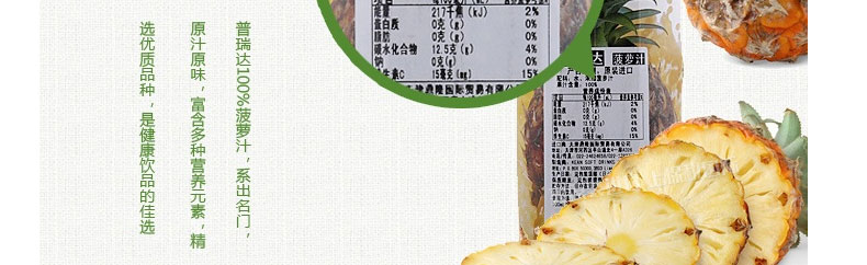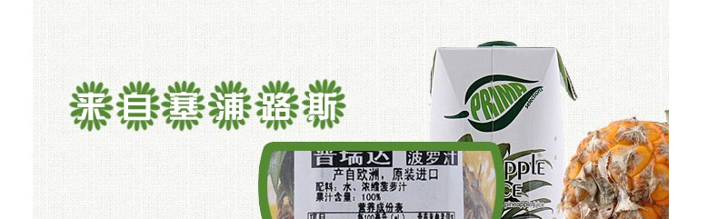 塞浦路斯 prima普瑞達菠蘿汁 原汁原味高營養果汁 1L/瓶—— 1.專屬果園采摘,規格統一,果實汲取陽光精華巔峰時期采摘。 2.健脾益胃,清胃解渴,補脾止瀉,甘甜可口 |
