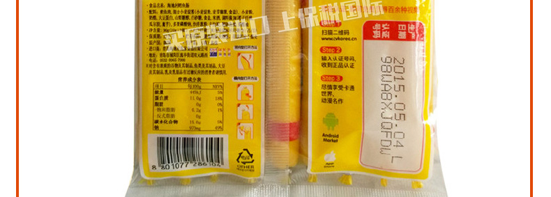 海地村鱈魚(yú)腸 寶寶輔食火腿腸 休閑零食 進(jìn)口食品 寶寶鱈魚(yú)腸10gx9根90g/袋—— 1、內(nèi)含獨(dú)立包裝,小巧精致,干凈衛(wèi)生,外出旅游攜帶方便。 2、來(lái)自深海無(wú)污染鱈魚(yú)為原料,深海魚(yú)肉富含多種氨基酸,蛋白質(zhì),維生素,低脂肪,無(wú)反式脂肪。 |