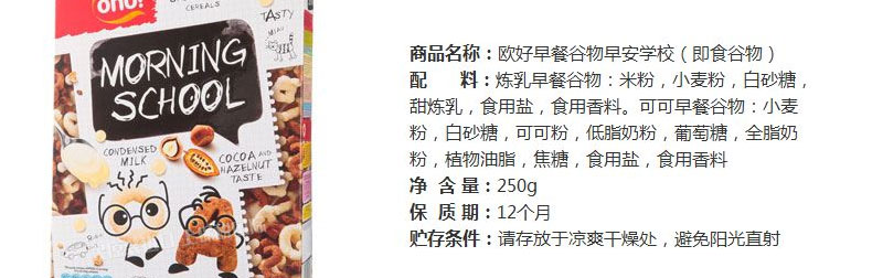 立陶宛歐好OHO早安學校即食谷物 字母形早餐 營養健康早餐選擇 250g/袋—— 1、天然粗糧谷物糅合而成,健康低脂。 2、趣味英文字母形狀,美味又智慧。 |