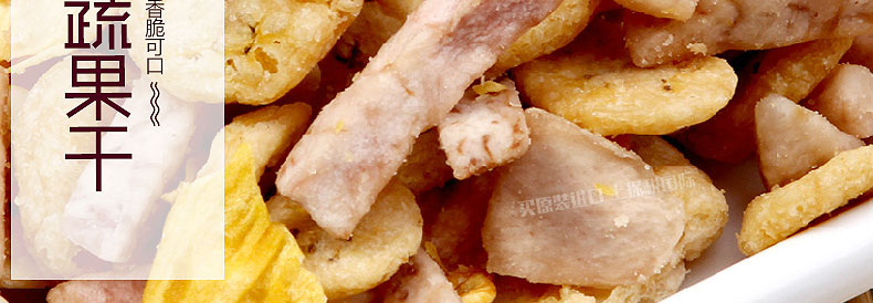越南閑食一番綜合蔬果干 香蕉芋頭菠蘿蜜混合蔬果干 香脆可口休閑零食 100g/袋—— 1、新鮮原果烘烤而成。 2、口感香脆可口。 |