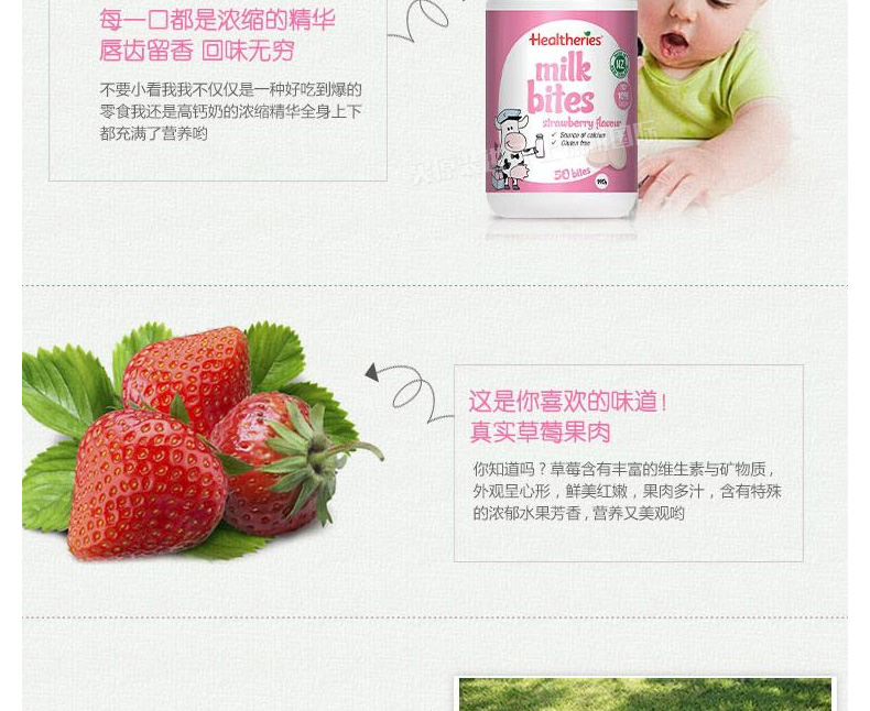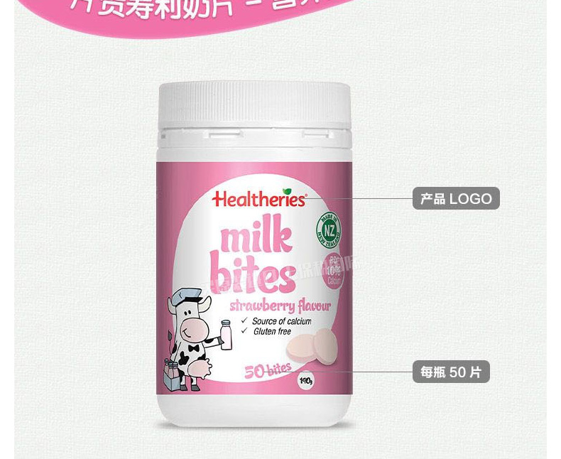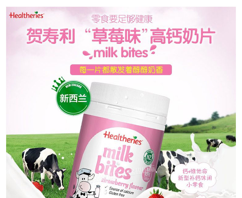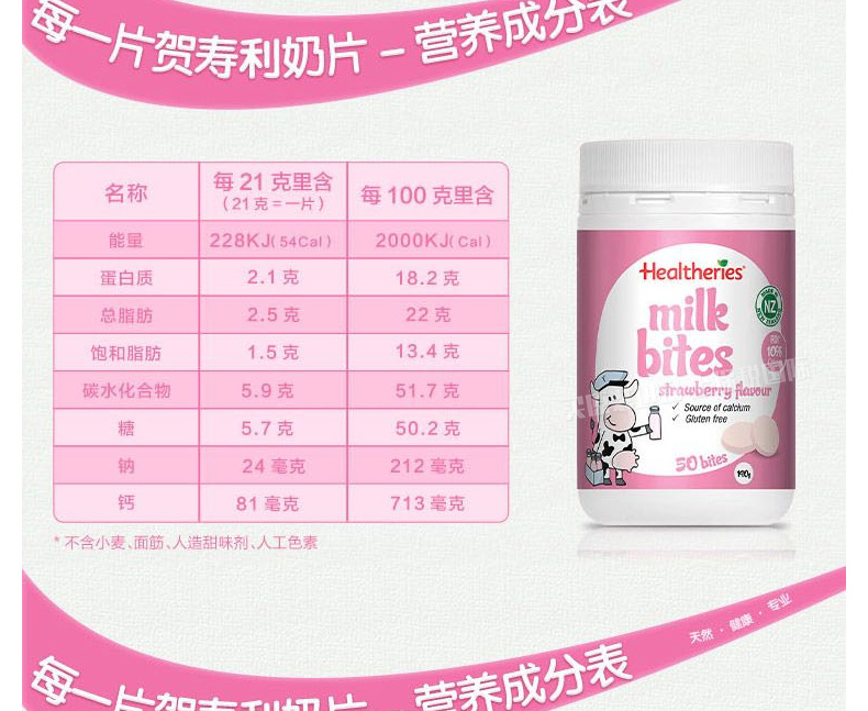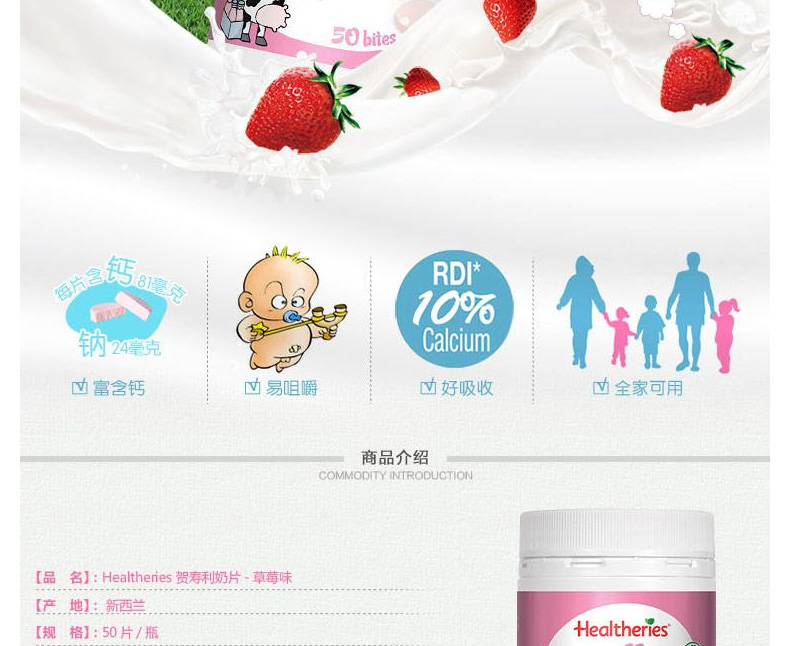 賀壽利Healtheries草莓味高鈣奶片咀嚼片50片 香濃易咀嚼 —— 1、草莓味、香草味,兩種口味任選。 2、富含豐富鈣質(zhì)和營(yíng)養(yǎng)成分。 3、口感香濃,易于咀嚼。 |