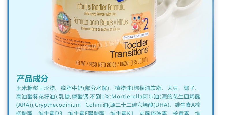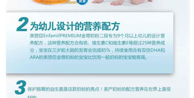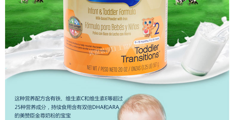 美贊臣2段橙色新包裝 金樽嬰幼兒奶粉 二段9~18個月寶寶奶粉 567g/罐—— 1. 全新改版,口味比較清淡,不甜膩。 2、含有豐富的鐵、DHA幫助寶寶大腦發(fā)育。 3、約60ml水,放1平勺奶粉,無糖無香精。 |