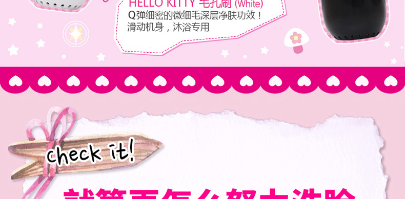 韓國進口hello kitty 黑色24K鍍金毛孔清潔刷 手動潔面儀 限量珍藏版祛黑頭美容工具—— 1.黑色款金色部分都是24K鍍金超有質感,更上檔次。 2.刷毛采用了特殊的抗菌材質,抑制細菌的產生,一定程度上預防了皮膚病的發生。 |
