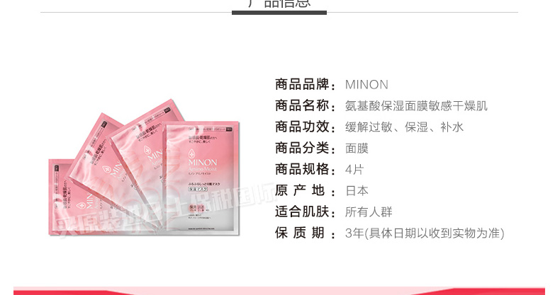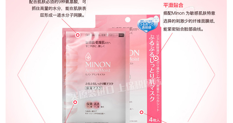 日本MINON敏感干燥肌必備面膜氨基酸保濕面膜貼4片 補(bǔ)水保濕舒緩過敏 |