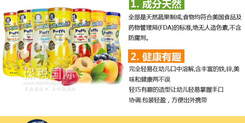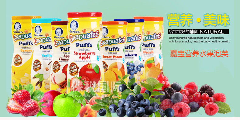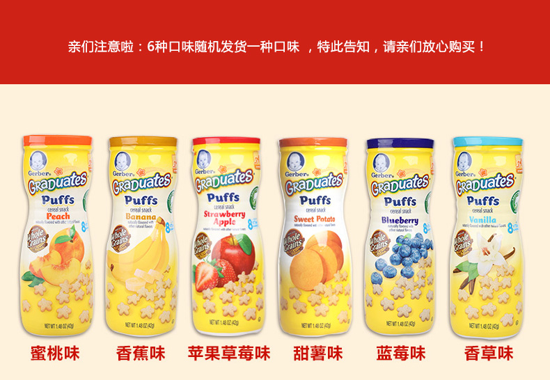 美國嘉寶GERBER星星泡芙 寶寶輔食 嬰兒泡芙 多種口味寶寶零食42g*3 三盒裝—— 1.輕盈蓬松的口感,入口即溶,美味又安全。 2.星星泡芙可以鍛煉寶寶們手眼協調能力、抓握能力。 3.食品由真實果肉烘焙制成,并非油炸食品。 |