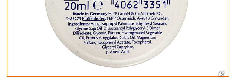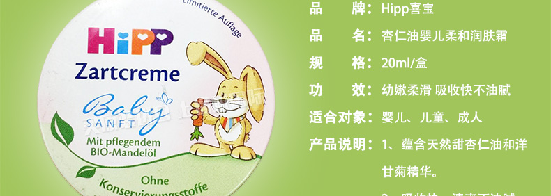 喜寶Hipp鐵盒裝杏仁油嬰兒柔和潤膚霜潤膚露20ml 寶寶的“小伙伴” |