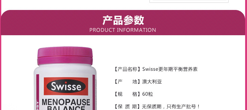 澳大利亞SWISSE更年期營養素片更年期平衡片 改善更年期癥狀 60片/瓶 |