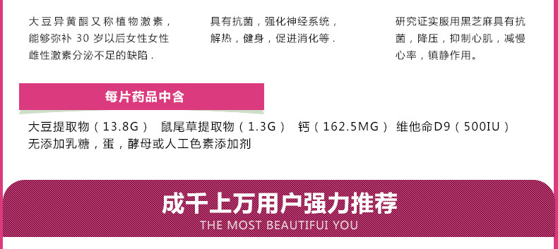 澳大利亞SWISSE更年期營養素片更年期平衡片 改善更年期癥狀 60片/瓶—— 1、維持雌性激素正常水平,改善更年期癥狀。 2、含大豆異黃酮、黑芝麻、鈣及維生素等成分。 3、孕婦和哺乳期婦女禁用。 4、服用期間如有身體不適,立即停用。 |