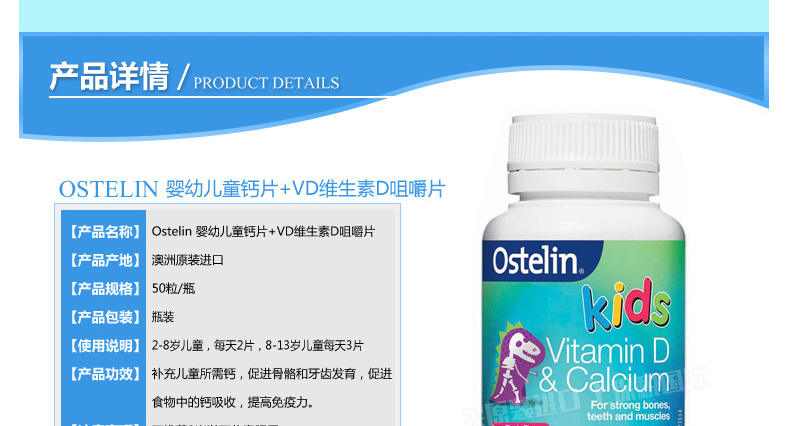 商品名稱 | 澳大利亞Ostelin kids 鈣+維D 梅子味咀嚼片 2-13歲兒童服用 50粒/瓶 | ||