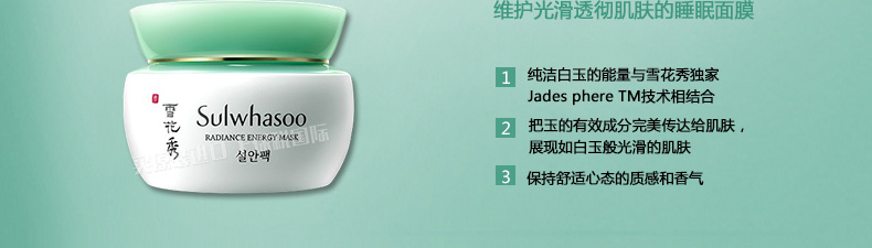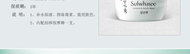 雪花秀Sulwhasoo雪玉瑩潤免洗睡眠面膜80ml 配刮痧按摩棒 保濕提亮排毒—— 1、補(bǔ)水保濕、排除毒素、提亮膚色。 2、內(nèi)配刮痧按摩棒一支。 |
