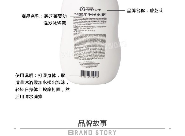 碧芝萊泡泡慕絲嬰幼兒洗發沐浴露洗發沐浴二合一 溫和保濕護膚 200ml/瓶 |