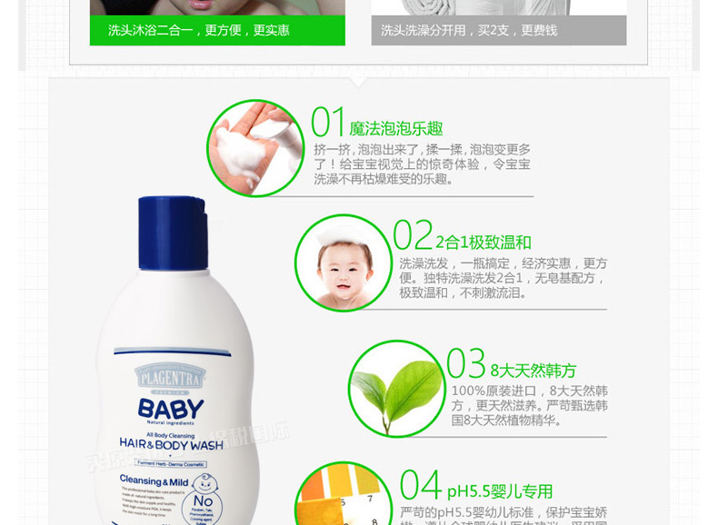 碧芝萊泡泡慕絲嬰幼兒洗發沐浴露洗發沐浴二合一 溫和保濕護膚 200ml/瓶—— 1、8大天然護膚成分,極致溫和不刺激。 2、弱酸性PH值,保護寶寶嬌嫩肌膚。 3、高保濕、獨特泡泡慕絲! |