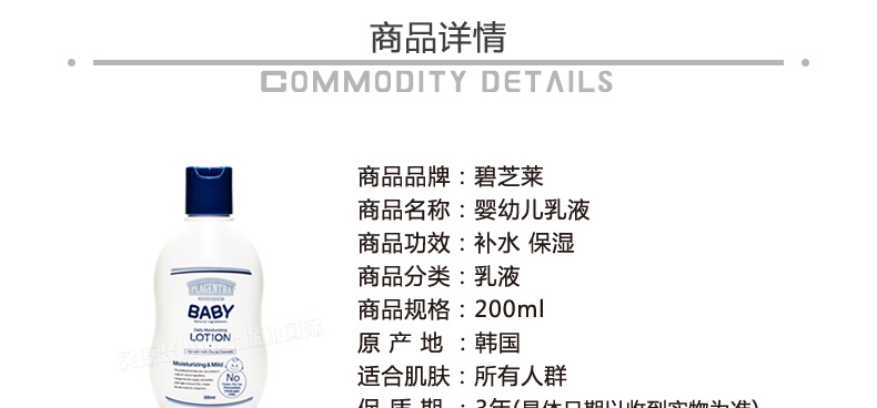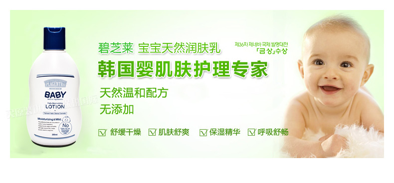 韓國碧芝萊寶寶專用乳液200ml嬰幼兒護膚系列 清爽保濕持久水嫩—— 1、富含納豆中萃取的高保濕成分和天然植物油精華。 2、溫和柔軟、親膚性強、散發淡淡清香! 3、補水保濕、清爽不黏膩。 |
