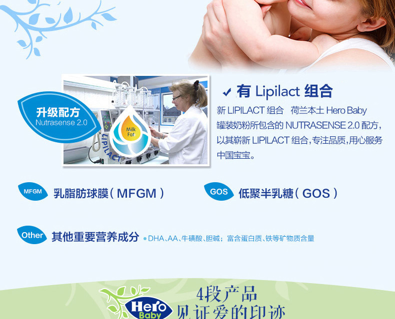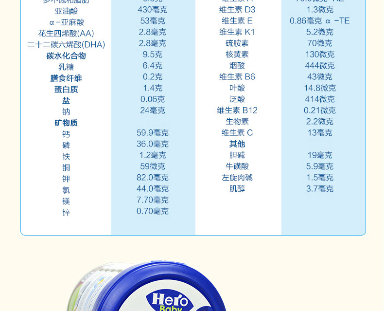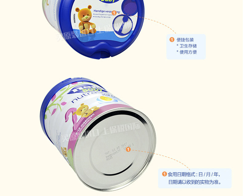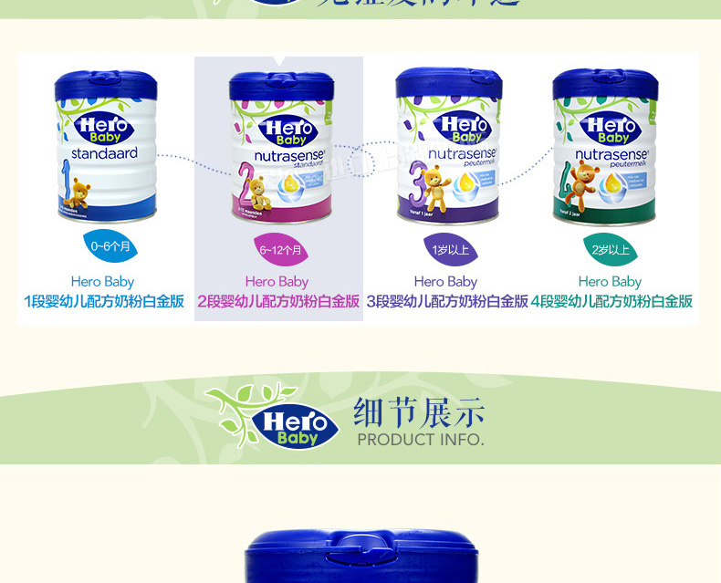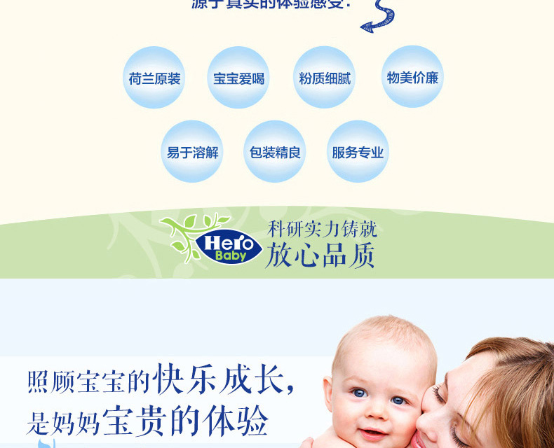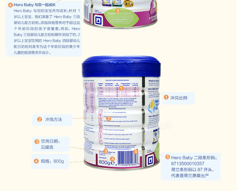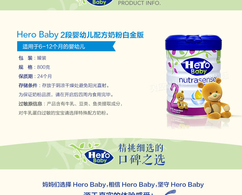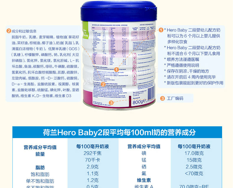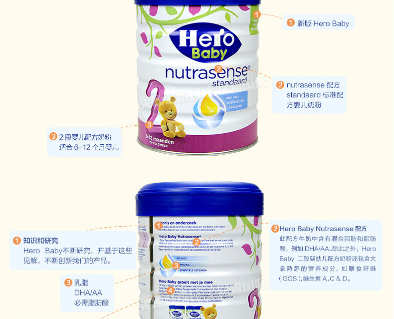 荷蘭本土美素Hero Baby白金版2段嬰兒奶粉800g 6-12個月寶寶—— 1、升級配方,近似母乳,口感醇正。 2、更堅固的鐵罐裝。 |