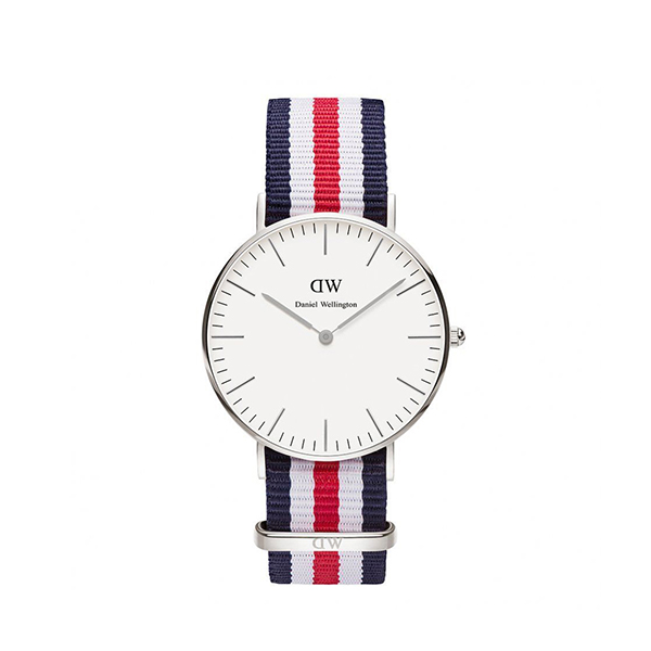 瑞典丹尼爾惠靈頓Daniel Wellington經典銀色表殼 紅白藍相間尼龍表帶 DW女士手表 時尚簡約情侶表女款 0606DW—— 1、表帶可更換佩戴,讓你隨心而變。 2、精準石英機芯,藍白粉多色相間腕帶,文藝范十足。 |