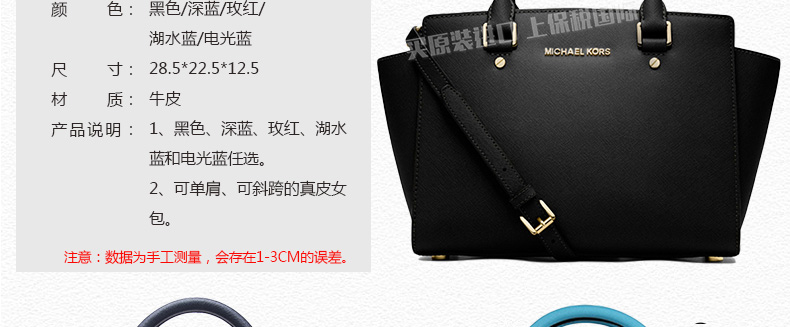 邁克.科爾斯Michael Kors中號笑臉包單肩斜跨MK女包女士包包30S3GLMS2L 黑色/深藍/玫紅/湖水藍/電光藍5色 簡約明朗—— 1、黑色、深藍、玫紅、湖水藍和電光藍任選。 2、可單肩、可斜跨的真皮女包。 注意:數據為手工測量,會存在1-3CM的誤差。 |