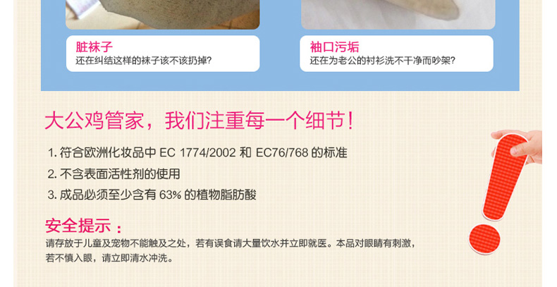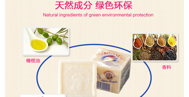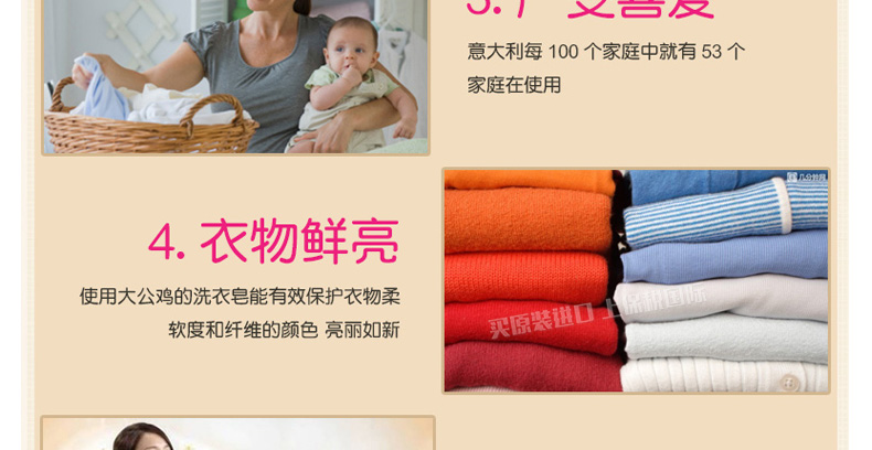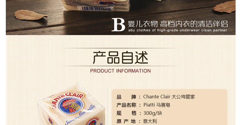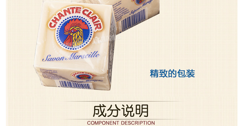 意大利 大公雞管家馬賽洗衣皂 Chante clair意大利雞頭 優(yōu)質(zhì)配方祛除頑固污漬呵護(hù)肌膚 溫和柔順 300g/塊—— 1、以化妝品為質(zhì)量標(biāo)準(zhǔn)的洗衣皂,適合嬰幼兒衣服及過(guò)敏人群。 2、方體形狀提升使用次數(shù),更便于使用。 |