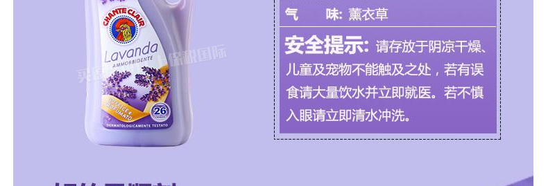 意大利 大公雞管家柔順劑 Chante clair雞頭全棉內衣棉麻織物羊毛衫真絲織品專用 1560ml/瓶 薰衣草味—— 1、天然溫和,敏感肌也安心。 2、不推薦用于運動服緊身衣物。 |