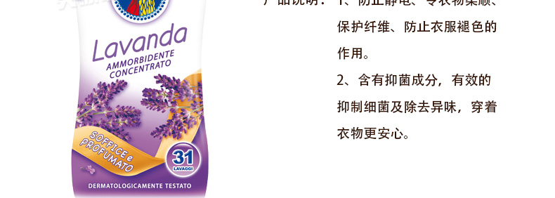 大公雞管家濃縮柔順劑 薰衣草香 意大利Chante Clair雞頭抗靜電衣物護理劑625ml/瓶—— 1、防止靜電、令衣物柔順、保護纖維、防止衣服褪色的作用。 2、含有抑菌成分,有效的抑制細菌及除去異味,穿著衣物更安心。 |