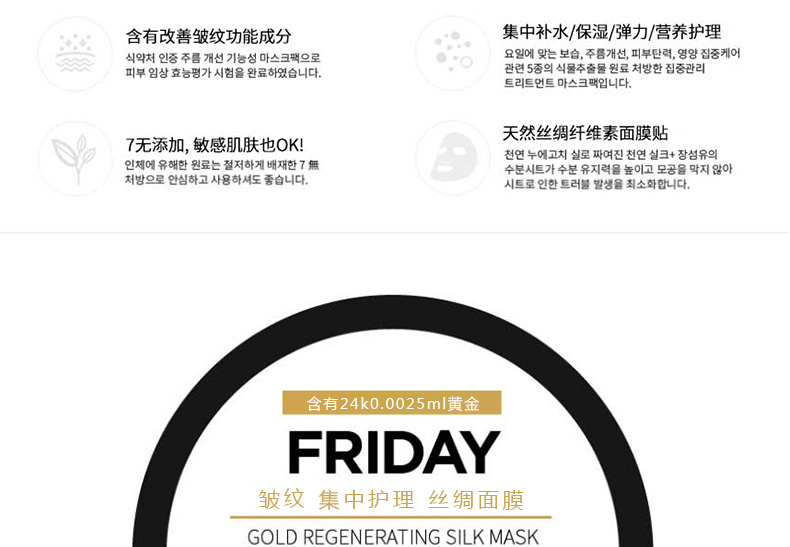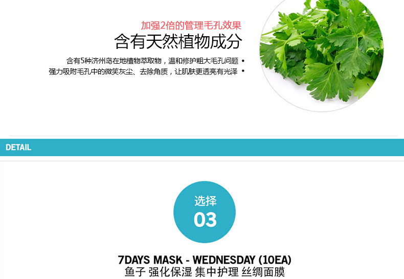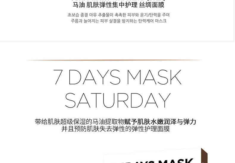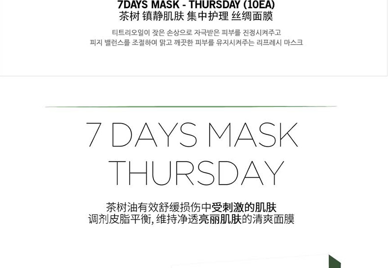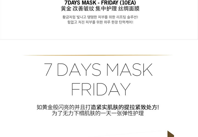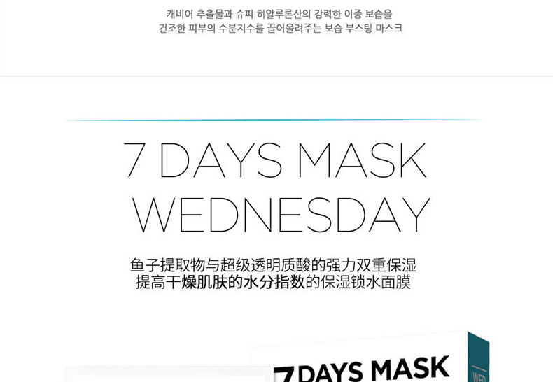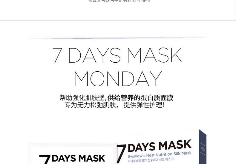 韓國 宋仲基代言 Forencos 7DAYS MASK 七天系列星期面膜 7日集中護理套裝 周一至周日一套搞定 10片/盒 7盒/套—— 1、獲得食藥局認證的2重技能型面膜,通過臨床試驗的產品。 2、本系列為7日集中護理產品,根據對應日期持續使用,效果更佳。 |