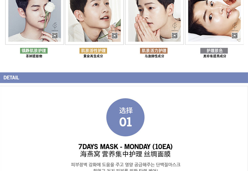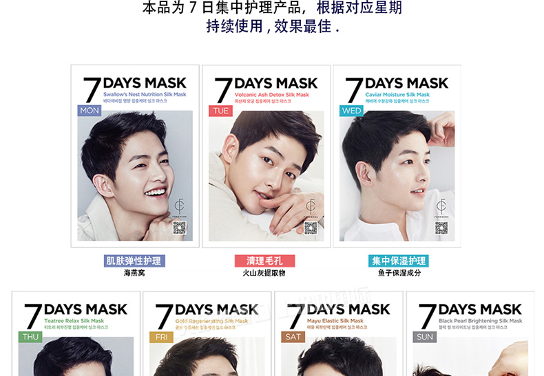 韓國 宋仲基代言 Forencos 7DAYS MASK 七天系列星期面膜 7日集中護理套裝 周一至周日一套搞定 10片/盒 7盒/套 |