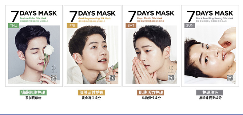 韓國Forencos 宋仲基7天面膜 MON星期一 海洋燕窩營養(yǎng)面膜 7DAYS七天集中護(hù)理系列蠶絲面膜 提升彈力周一款 10片/盒