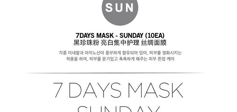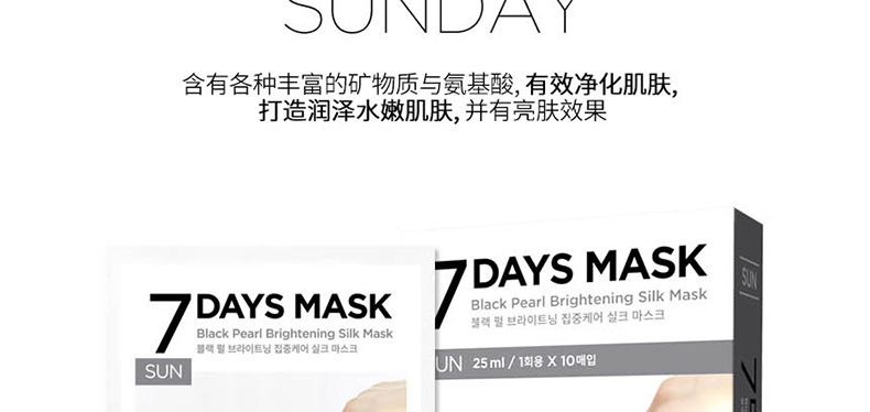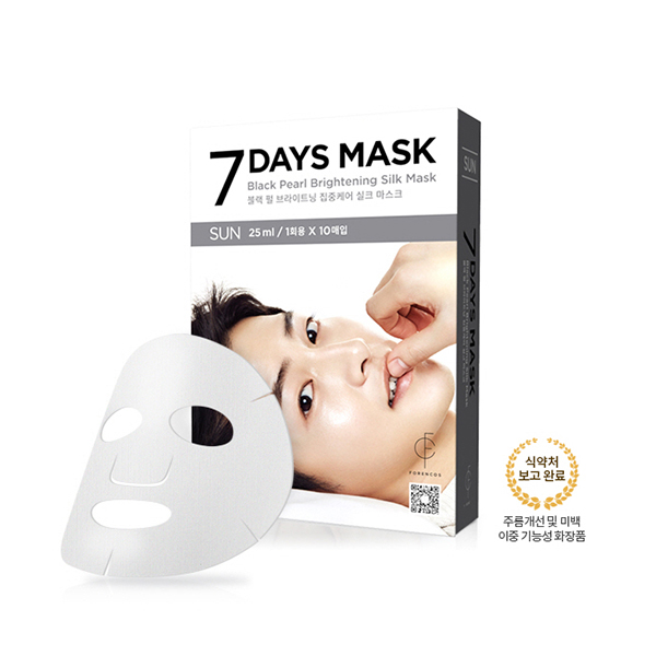 韓國Forencos 宋仲基代言7天面膜 SUN 星期日黑珍珠亮白蠶絲面膜 7DAYS七天集中護理系列 周日款 10片/盒 |