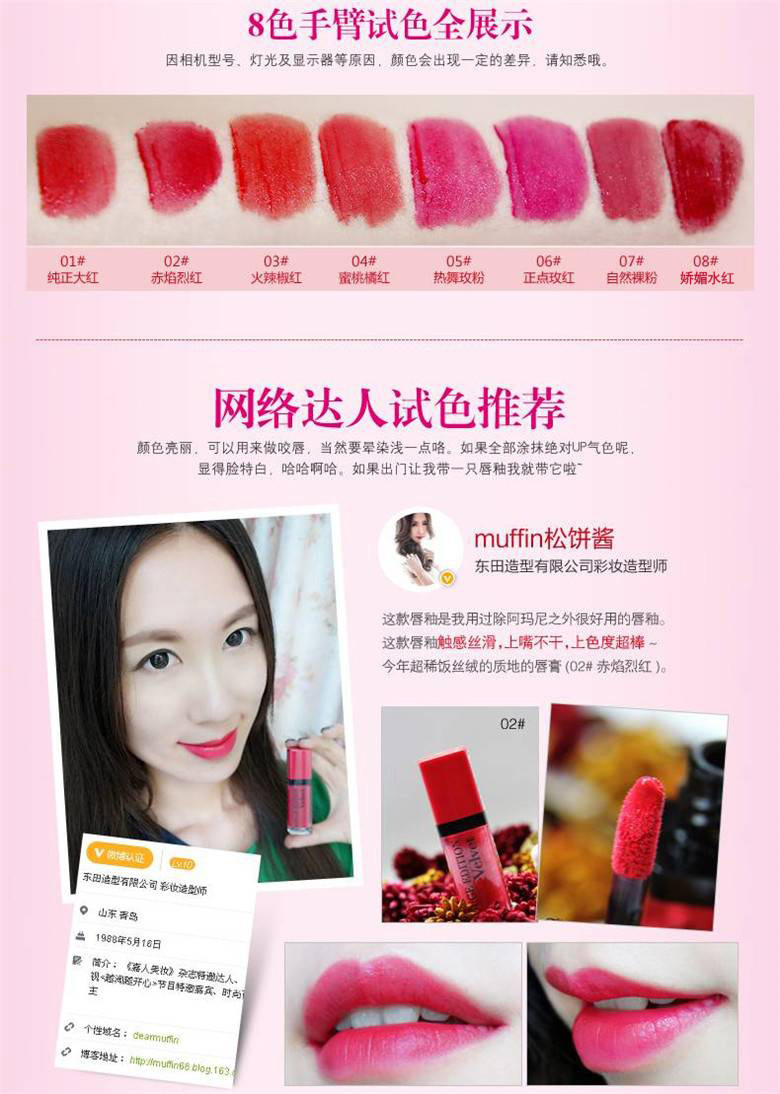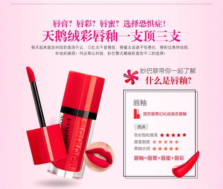 法國bourjois妙巴黎多重水亮輕誘唇蜜-誘惑玫紅口紅 唇彩 6.5ml