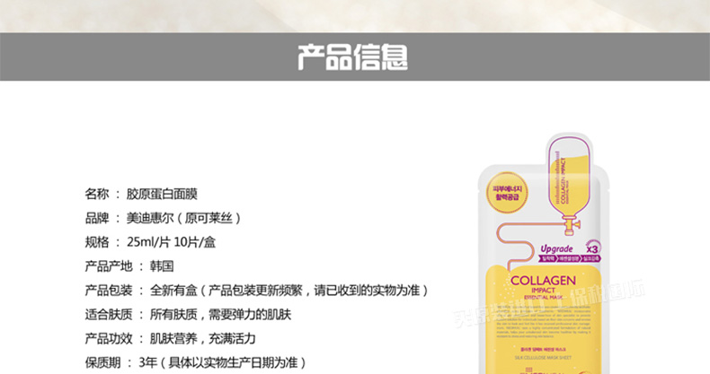韓國美迪惠爾可萊絲MEDIHEAL膠原蛋白面膜貼 彈力滋養(yǎng)保濕10片/盒 |