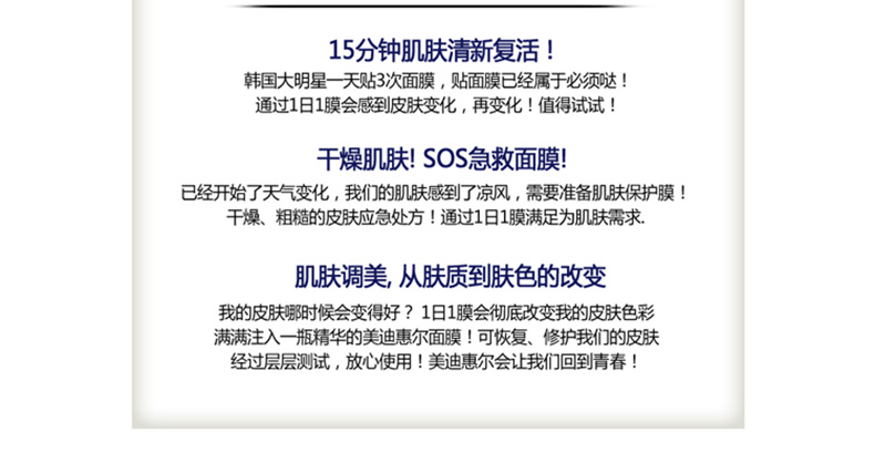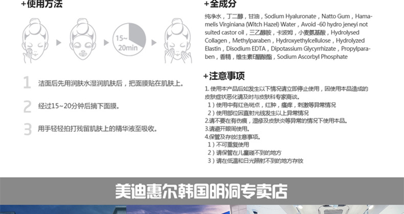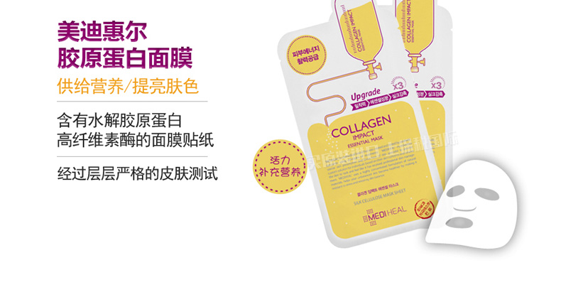 韓國美迪惠爾可萊絲MEDIHEAL膠原蛋白面膜貼 彈力滋養(yǎng)保濕10片/盒—— 1、蘊(yùn)含海洋膠原蛋白,海洋彈力蛋白,維生素E等護(hù)膚精華。 2、滋養(yǎng)彈力、保濕修護(hù)抗衰老。 |